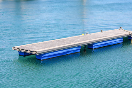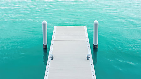 A serene view of a floating dock emerging from crystal clear turquoise water, offering a peaceful escape into nature's beauty. Ideal for relaxation.