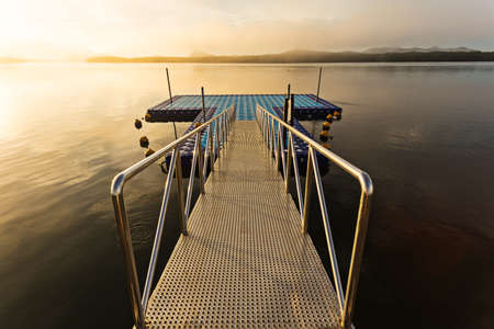 Pier on the lake in an early summer morning.