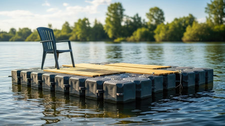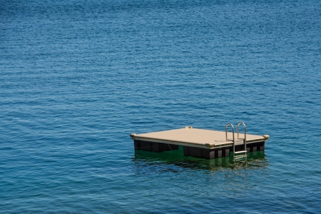 Empty swim platform floating on a lake