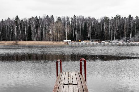 Wooden landing on the lake