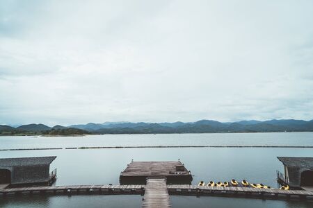 Plastic raft and Huay Tueng Thao Lake in the mornin, Chiang Mai Province.