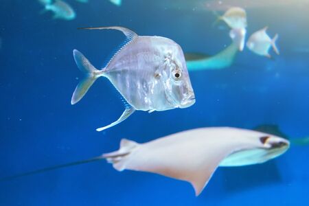 transparent sea Vomer fish swims in the aquarium