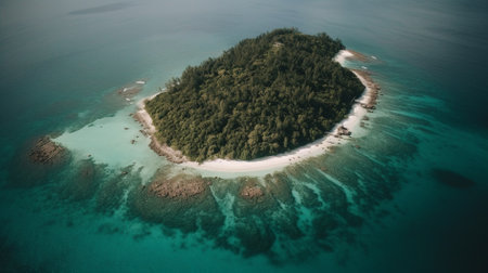 The tropical island seen from above in aerial view. Image generated with Generative AI