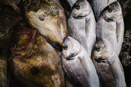Fresh fish catch of the day creating an interesting seafood background texture.