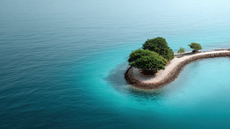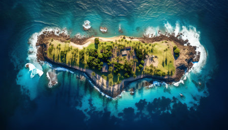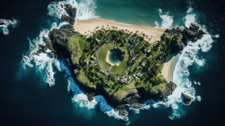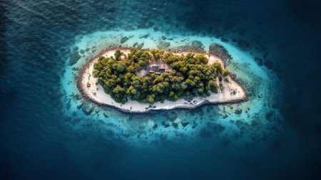 An aerial view of a small island in the middle of the ocean. AI generative image.
