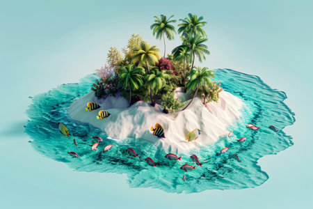 3d illustration of a tropical island on the ocean.