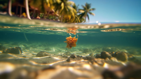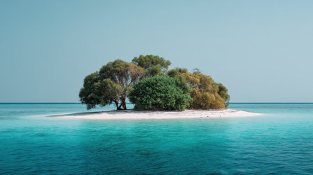 An AI generated tropical island surrounded by crystal clear blue waters