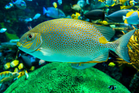 Yellowspot rabbitfish Siganus guttatus, sea fish, close up