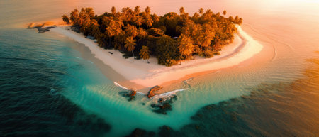Generative AI : Panoramic aerial view of a desert island among the Atolls surrounded by the Indian Ocean Maldives archipelagos