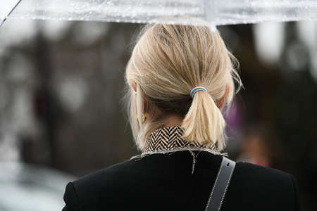 Milan, Italy - February 20, 2019: Street style outfits - models, bloggers and influencers before a fashion show during Milan Fashion Week - MFWFW19