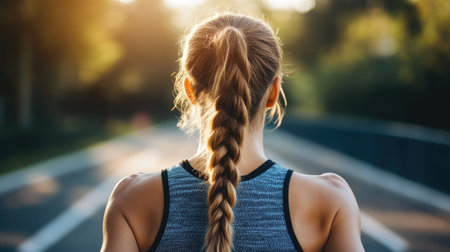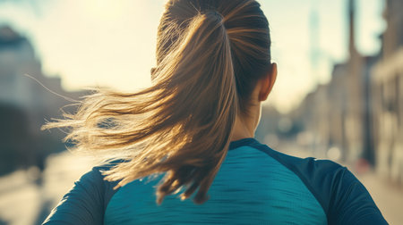 Sunlit Road: Detailed Back View of Female Runner in Action