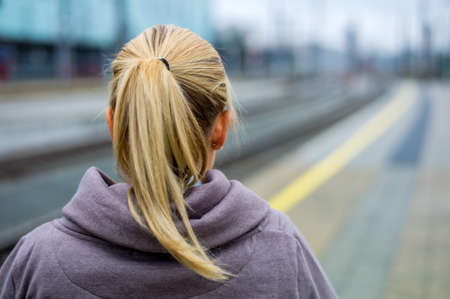 portrait of a thoughtful young woman from behind