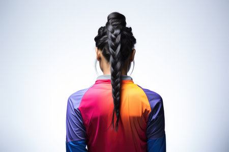 A vibrant gradient backdrop highlights a ponytail in motion, capturing the essence of movement and energy during a dynamic activity.