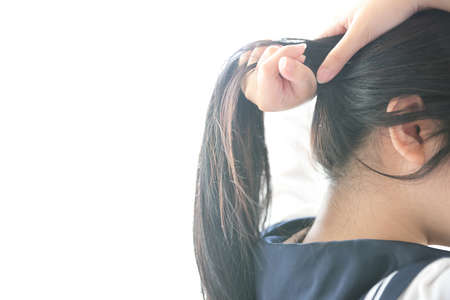 Close up of Asian High School Girl student neck in white room