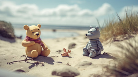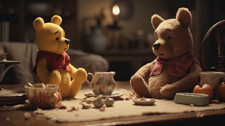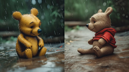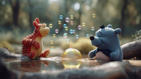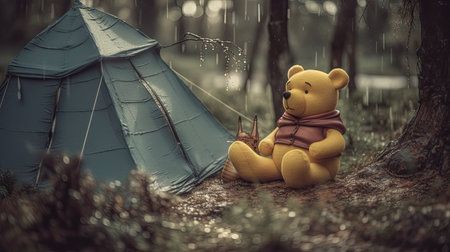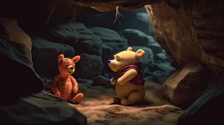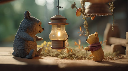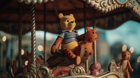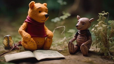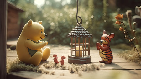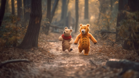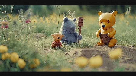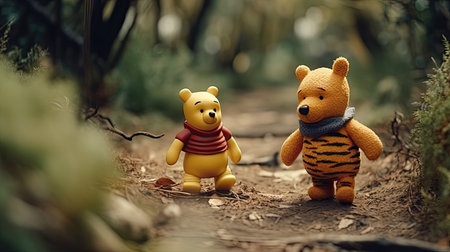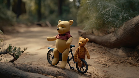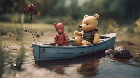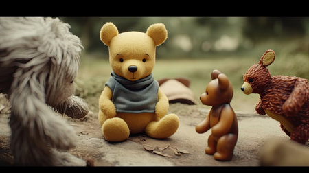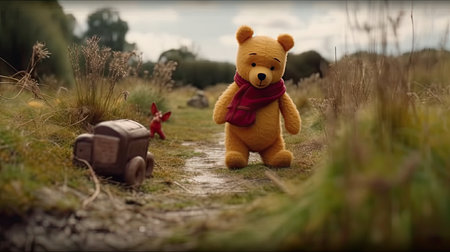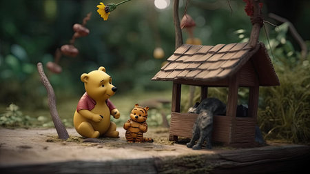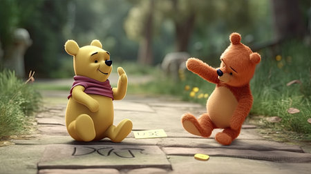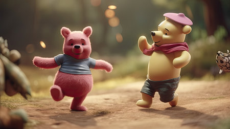 Cute illustration of Winnie the Pooh playing with in the park, 3d realistic style