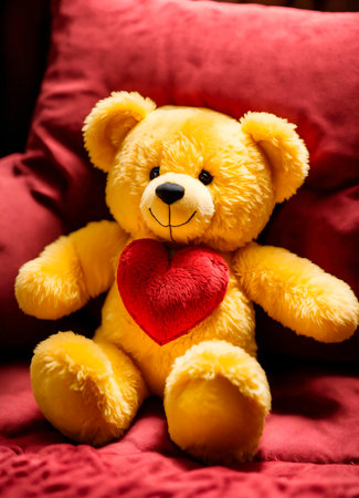 Teddy bear with red heart. Valentine's day concept.