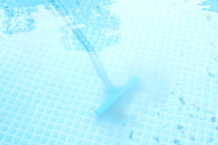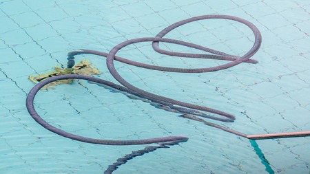 Pool vacuum cleaner for cleaning swimming pool. Cleaning pool from dirt and waste.