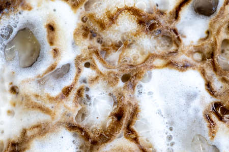 Carbonated drink foam close up with small bubbles and special shape texture