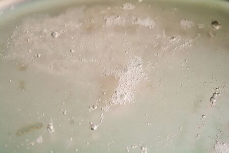 soap bubbles cleaning agent on the surface of the water