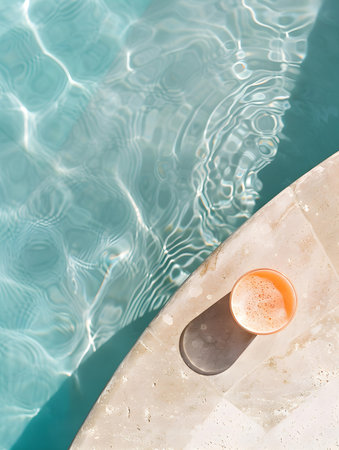 Top View of a beige Drink by the Poolside. Luxury Vacation Wallpapers