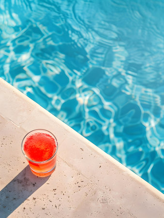 Top view of a light red drink by the poolside. Luxury Vacation Wallpapers