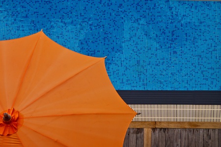 Swimming pool with orange color umbrella
