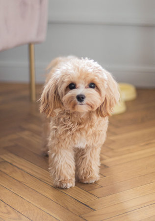 Maltipoo dog. Adorable puppy. Charming brown puppy maltipoo