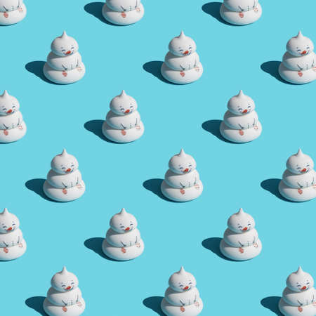 Seamless pattern made with funny snowmen on blue background, as a backdrop or texture. Minimal winter concept. Wallpaper for your design.