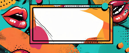 Pop Art Style Banner Showcasing a Colorful Mix of Comic Book Elements, Speech Bubble, female lips, and Vibrant Colors. Copy space.