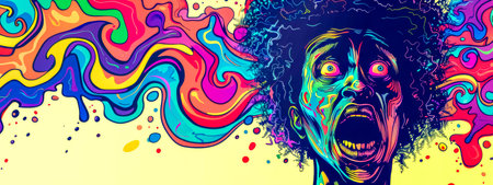 Psychedelic portrait with vibrant abstract background