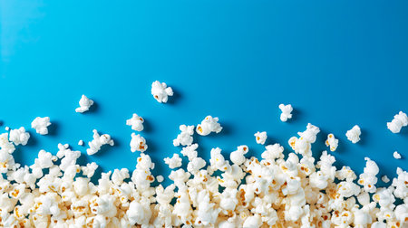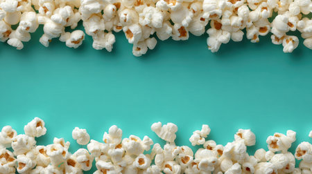 A vibrant teal background showcases a border of freshly popped popcorn, perfect for enhancing snack-themed creations and movie night promotions.