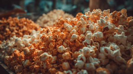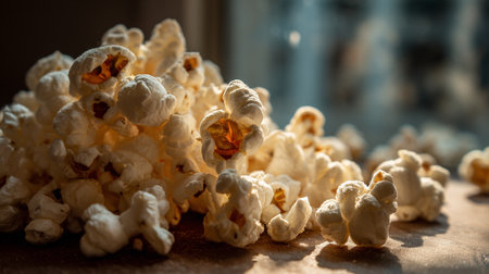 Detailed popcorn shot: A delicious and crunchy snack perfect for any occasion.