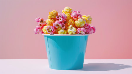 Popcorn arranged neatly on a colorful background Conceptual of obsessive compulsive disorder. Pop art style