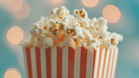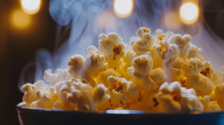 Delicious and buttery popcorn fills the frame, ready for movie night.