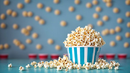 blue box film bucket background popcorn food red isolated cinema corn. Generative AI.