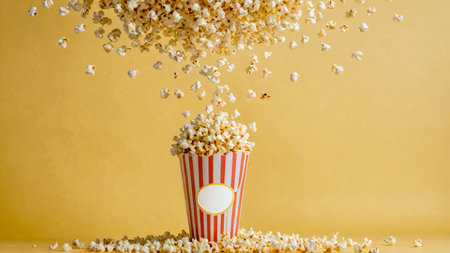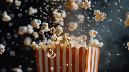 A Cinematic Burst: Popcorn Exploding from Striped Containers in Slow Motion