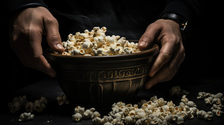 AI Generated. A full bowl of fresh popcorn with some scattered kernels