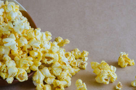 Delectable pile of crunchy buttery popcorn ready to be eaten soon.