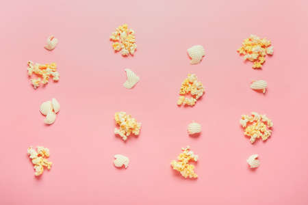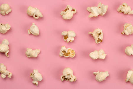 Popcorn arranged neatly on a colorful background Conceptual of obsessive compulsive disorder. Pop art style