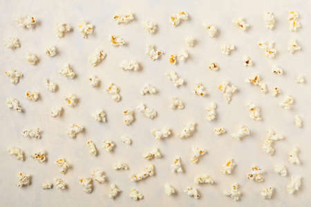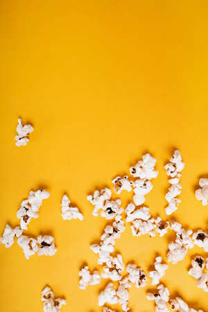 Popcorn on yellow background. Top view. Popcorn background. Popcorn Day