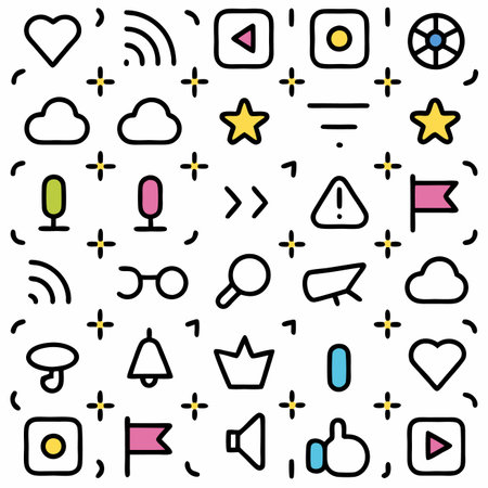 Collection of vibrant, flat-style icons featuring everyday objects and symbols.