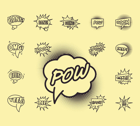 bubbles line style set of icons design of pop art retro expression comic theme Vector illustration