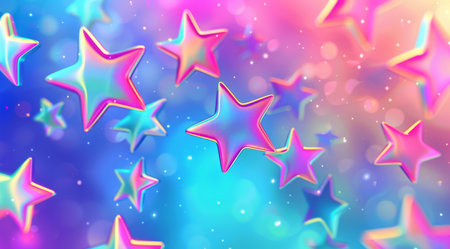 Vibrant neon stars are brilliantly illuminating a whimsical and colorful backdrop that captures the imagination