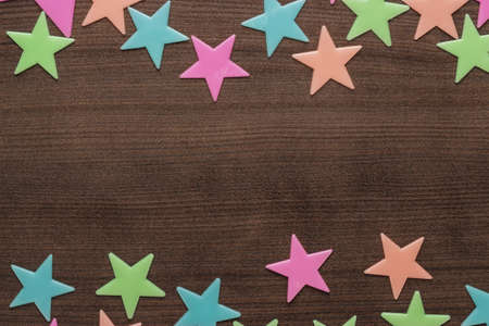 Colorful stars confetti background. Selective focus. Shallow depth of field.
