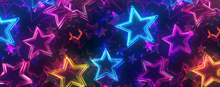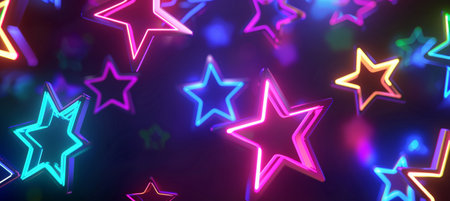 Bright and colorful neon stars create a lively and playful atmosphere. Perfect for designs focused on nightlife, celebrations, and creative projects.