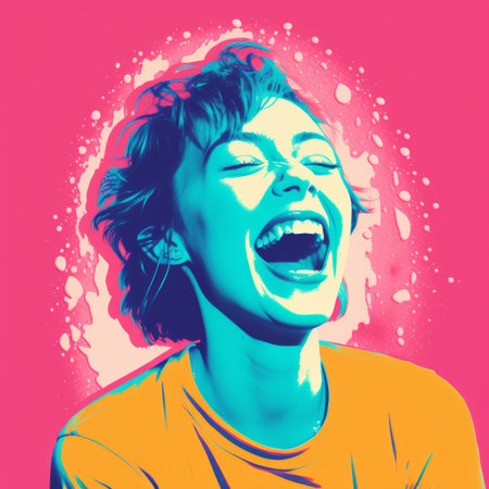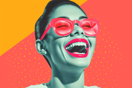 a pop art style portrait of a woman laughing