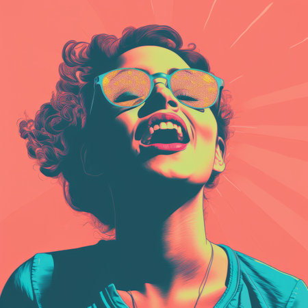 a pop art style illustration of a woman laughing