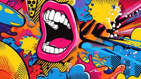 Dynamic pop art pattern with a retro 90s vibe features lively comics illustration. Colorful, Ai Generated.