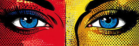 Pop Art Eyes Vibrant Close-Up, Comic Book Style, Expressive Look, Retro Makeup, Graphic Design