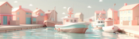 a photo of a captivating harbor view in the french countryside, rendered in cinema4d with a whimsical character design. the sky is a vibrant blue, complementing the colorful buildings. this seaside scene showcases the beauty of folkloric realism in 8k resolution, creating a visually stunning and immersive experience. ai generated
